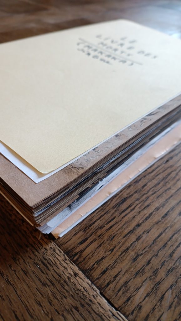 Dès que l’encrage est terminé, et vérifié une nouvelle fois pour être sûr de n’avoir rien oublié, la suite pointe le bout de son nez avec la mise en « couleur ». Alors oui j’utilise des guillemets car en fait je n’utilise que du noir et du blanc. Fusain, pastel, crayon noir et poudre de graphite pour le noir et pastel, crayon blanc et encre blanche pour le blanc justement. Sans oublier les estompes, les chiffons, les gommes (classiques et électriques) et la star : le papier brun (là aussi le choix fut compliqué).