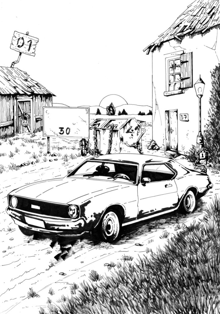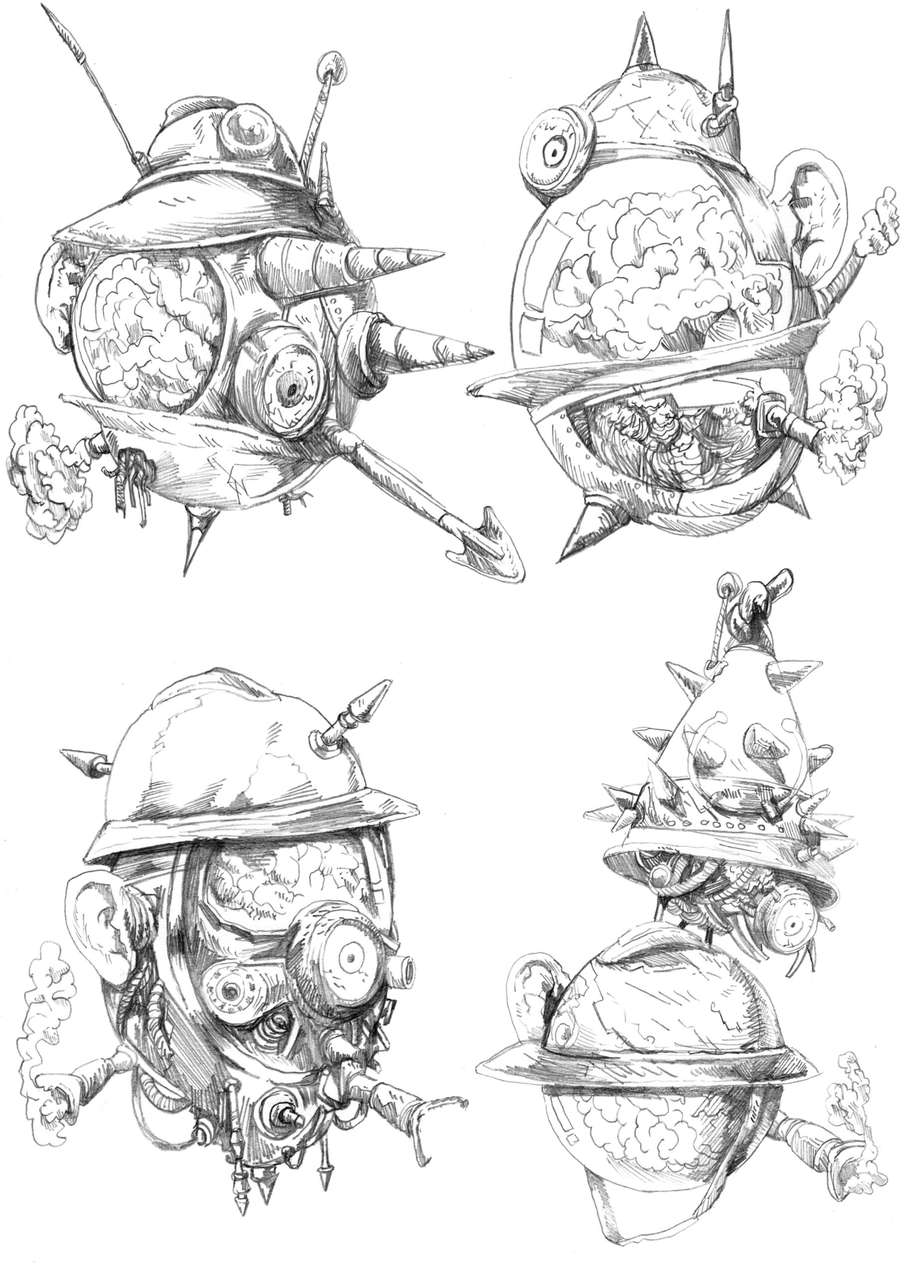 Grâce aux descriptions détaillées de Jérôme j’ai pu débuter les croquis rapidement après. Il y avait 50 illustrations à faire, donc il fallait s’y mettre au plus vite.