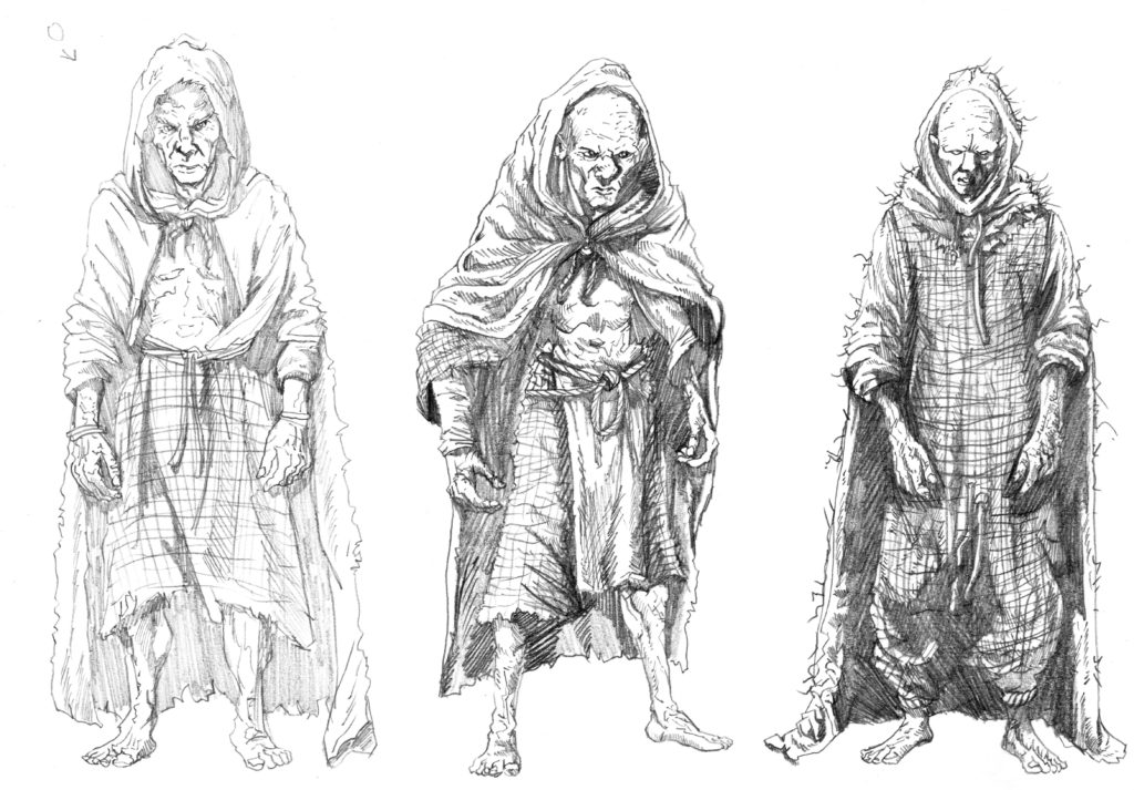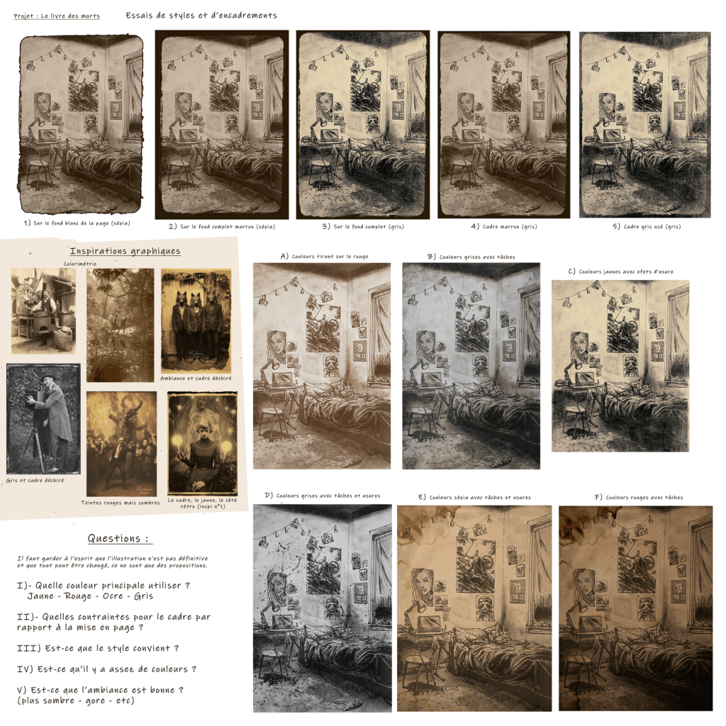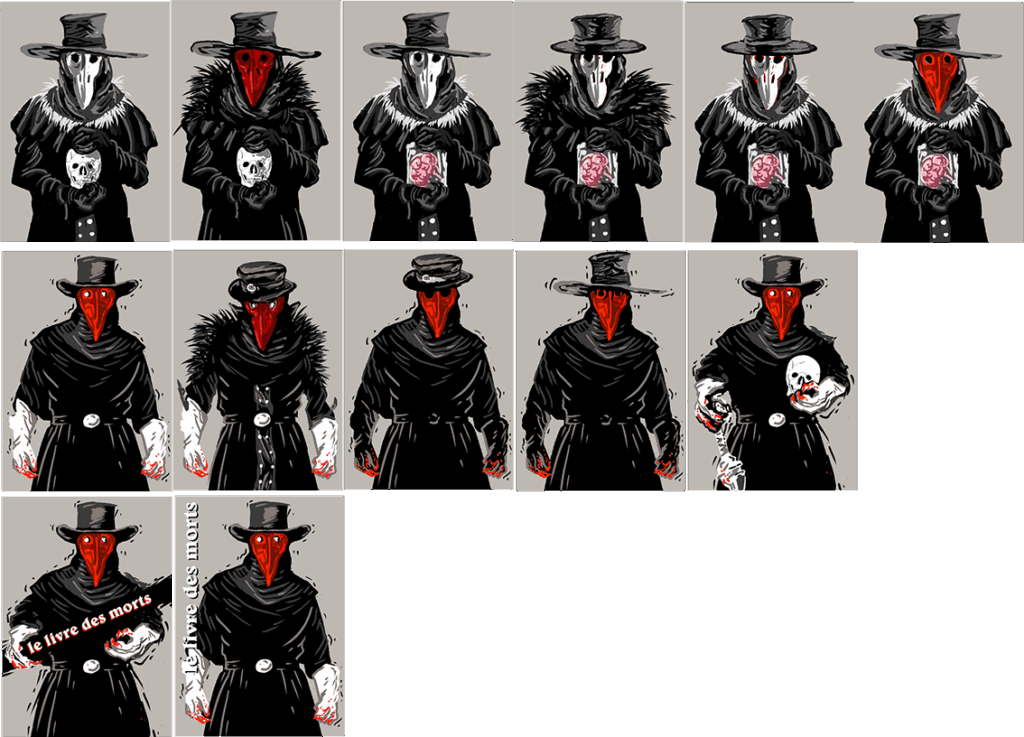 Le livre des morts est avant tout un livre horrifique où les « monstres » ont une place importante, j’ai donc commencé par des recherches graphiques sur ces derniers (mais pas tous, il fau ménager le suspens).